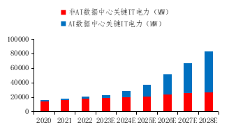 圖4:美國AI數(shù)據(jù)中心關(guān)鍵IT電力需求