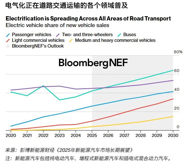 在這一日益復雜的背景下,我們很榮幸地發(fā)布我們的《2025年新能源汽車市場長期展望》。本報告對上述趨勢進行逐一分析,并借助彭博新能源財經(jīng)全球行業(yè)和地區(qū)專家團隊的真知灼見,為道路交通運輸?shù)奈磥硖峁┳钚骂A測情景。