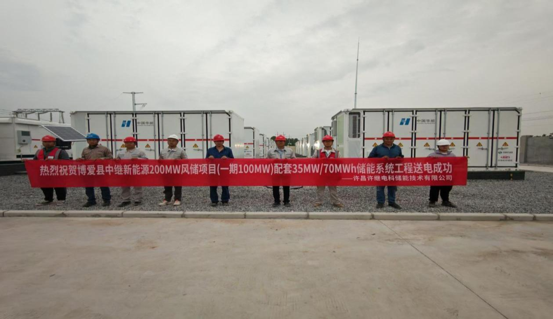 2025年5月31日,博愛(ài)縣中繼新能源200MW風(fēng)儲(chǔ)項(xiàng)目(一期100MW)配套35MW/70MWh儲(chǔ)能系統(tǒng)工程送電成功。項(xiàng)目位于河南省焦作市博愛(ài)縣南部孝敬鎮(zhèn)境內(nèi),風(fēng)電場(chǎng)一期規(guī)劃總裝機(jī)容量100MW, 擬安裝18臺(tái)單機(jī)容量為5.56MW 風(fēng)電機(jī)組,并配置35MW/70MWh儲(chǔ)能系統(tǒng)。許繼電科儲(chǔ)能為該項(xiàng)目提供了全套的儲(chǔ)能設(shè)備,包含7套儲(chǔ)能單元以及后臺(tái)操控、能量管理、協(xié)調(diào)控制等配套系統(tǒng)。