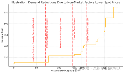 這些因素雖來源各異,但共同作用于一個核心問題:現(xiàn)貨市場的“潛在厚度”(depth)被顯著壓縮,并限制了價格對供需變化的反饋能力。特別是在春節(jié)、五一等低負(fù)荷時段,這些因素其影響變的不可忽略,能量市場退化為靜態(tài)、缺乏需求、調(diào)整能力有限的“余量市場”,所謂the static residual market with no demand。