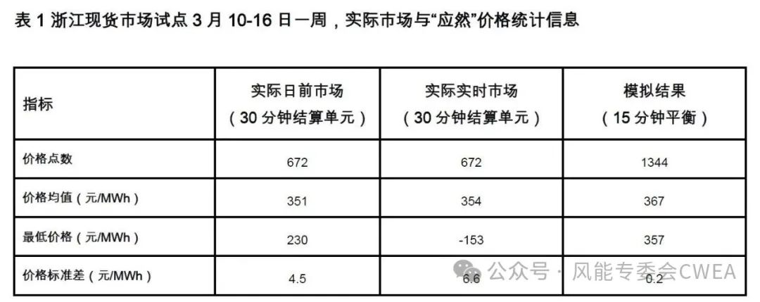 表1 浙江現(xiàn)貨市場試點3月10-16日一周,實際市場與“應(yīng)然”價格統(tǒng)計信息