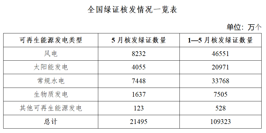 2025年5月,國(guó)家能源局核發(fā)綠證2.15億個(gè),環(huán)比下降0.59%,涉及可再生能源發(fā)電項(xiàng)目12.71萬個(gè),其中可交易綠證1.30億個(gè),占比60.31%;本期核發(fā)2025年4月可再生能源電量對(duì)應(yīng)綠證1.57億個(gè),占比73.20%。2025年1-5月,國(guó)家能源局共計(jì)核發(fā)綠證10.93億個(gè),其中可交易綠證7.62億個(gè)。