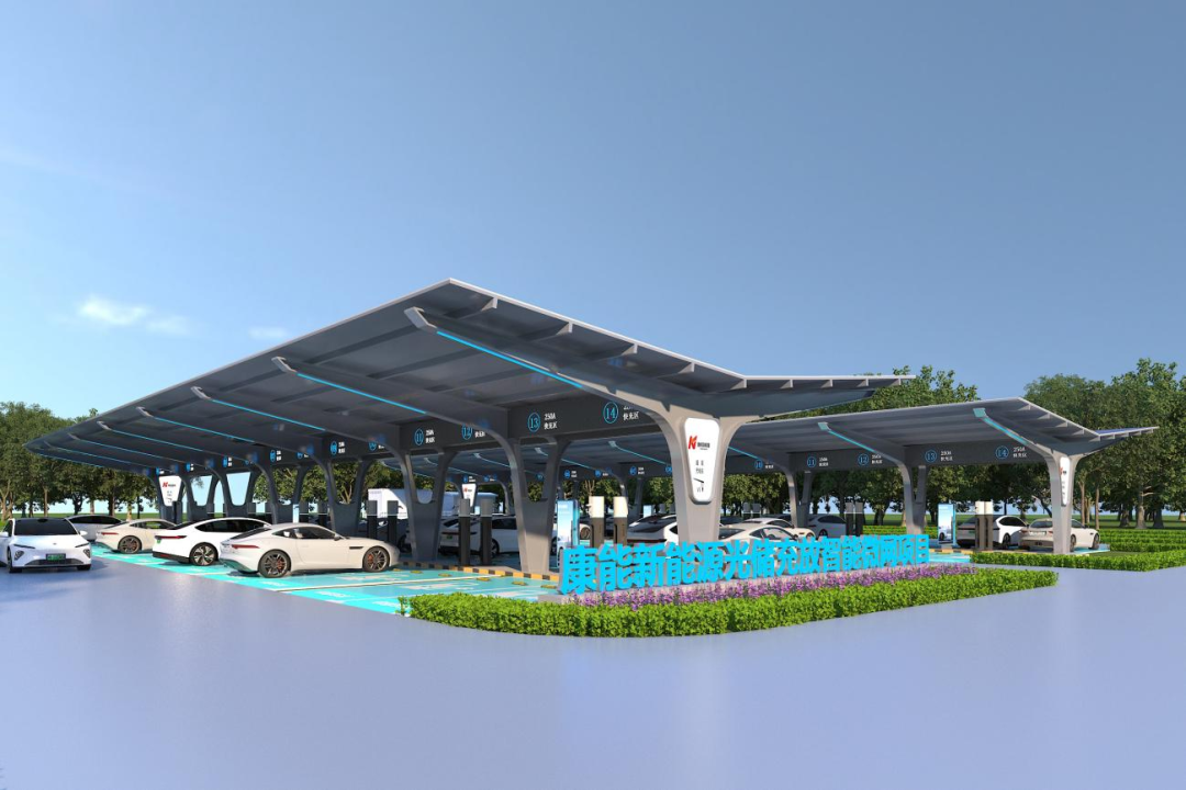 康能新能源公司重磅推出的“光儲(chǔ)充放”V2G智能微網(wǎng)項(xiàng)目融合了光伏發(fā)電、儲(chǔ)能系統(tǒng)、智能充電以及車輛到電網(wǎng)(V2G)四大核心技術(shù),形成了一個(gè)高度集成、協(xié)同運(yùn)作的能源閉環(huán)系統(tǒng)。項(xiàng)目中的光伏發(fā)電如同能源生產(chǎn)的“綠色引擎”,日均發(fā)電量可達(dá)959kWh,為充電服務(wù)提供清潔電力“源頭活水”。儲(chǔ)能系統(tǒng)配置261kWh,如同“電力水庫”,在電網(wǎng)低谷時(shí)段成為“能量倉庫”,在光照充足時(shí)儲(chǔ)存多余電能,在用電高峰或光照不足時(shí)釋放能量,平抑電價(jià)波動(dòng);智能充電設(shè)施布局360kW超充終端16個(gè)、慢充終端38個(gè),V2G充放電2個(gè),可同時(shí)滿足56臺(tái)新能源汽車即插即充,最快15分鐘充電80%,并通過智能調(diào)度系統(tǒng)優(yōu)化充電排隊(duì)效率;而V2G(車輛到電網(wǎng))更是項(xiàng)目的一大亮點(diǎn),它打破了傳統(tǒng)能源單向流動(dòng)的模式,讓新能源汽車在充電的同時(shí),還能將車輛電池中的電能反向輸送回儲(chǔ)能電網(wǎng),實(shí)現(xiàn)車與儲(chǔ)能電網(wǎng)之間的雙向互動(dòng)。通過“光儲(chǔ)充放一體化”運(yùn)作,充電站自身用電成本降低約30%,這部分紅利直接轉(zhuǎn)化為惠民電價(jià)。