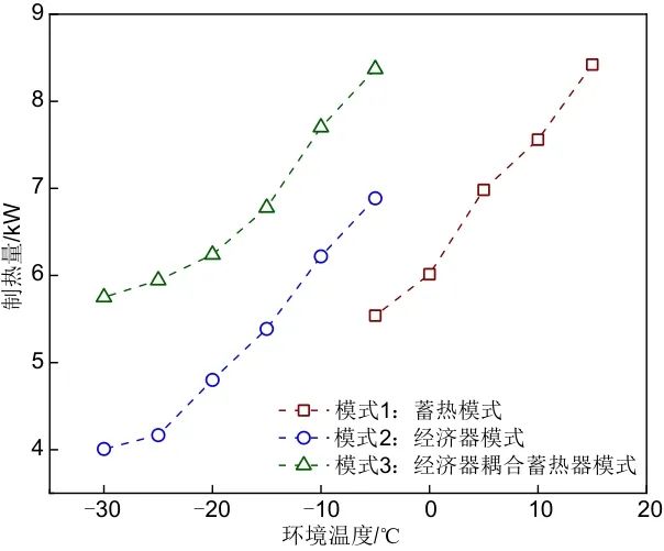 圖5 不同運(yùn)行模式下制熱量隨環(huán)境溫度的變化