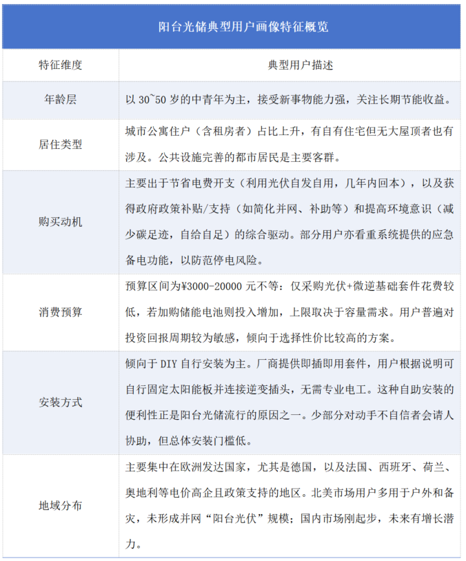 陽臺光儲,其標(biāo)準(zhǔn)產(chǎn)品形態(tài)通常由一到四塊光伏組件、一臺微型逆變器以及一個(gè)容量在1-5kWh之間、支持模塊化擴(kuò)展的插拔式儲能電池構(gòu)成。這套系統(tǒng)的核心特質(zhì)在于其“消費(fèi)品”屬性,它徹底顛覆了傳統(tǒng)戶用儲能作為“小型工程”的認(rèn)知。這種顛覆體現(xiàn)在四個(gè)關(guān)鍵維度:目標(biāo)用戶從獨(dú)棟住宅業(yè)主下沉至基數(shù)更為龐大的公寓住戶與租戶;安裝模式從依賴專業(yè)持證安裝商的復(fù)雜工程,簡化為用戶可以自行完成的“DIY”操作,實(shí)現(xiàn)了真正的“即插即用”;銷售渠道也因此從層級化的安裝商/分銷商網(wǎng)絡(luò),轉(zhuǎn)變?yōu)橐云放乒倬W(wǎng)、亞馬遜等電商平臺為主的線上B2C直銷模式;最終,其核心價(jià)值主張也更為聚焦和直接——并非追求全屋備電或能源獨(dú)立,而是為用戶提供立竿見影的、可量化的電費(fèi)節(jié)省。