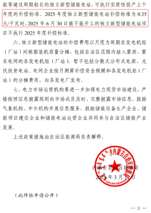 內(nèi)蒙古自2023年起明確對新投運(yùn)儲能項(xiàng)目實(shí)施容量補(bǔ)償政策,補(bǔ)貼標(biāo)準(zhǔn)為0.35元/kWh,期限為十年,按實(shí)際放電量核算。這種直接掛鉤實(shí)際放電的機(jī)制,有效引導(dǎo)儲能深度參與調(diào)節(jié)環(huán)節(jié),改變“建而不用”“配建不運(yùn)營”等行業(yè)問題。