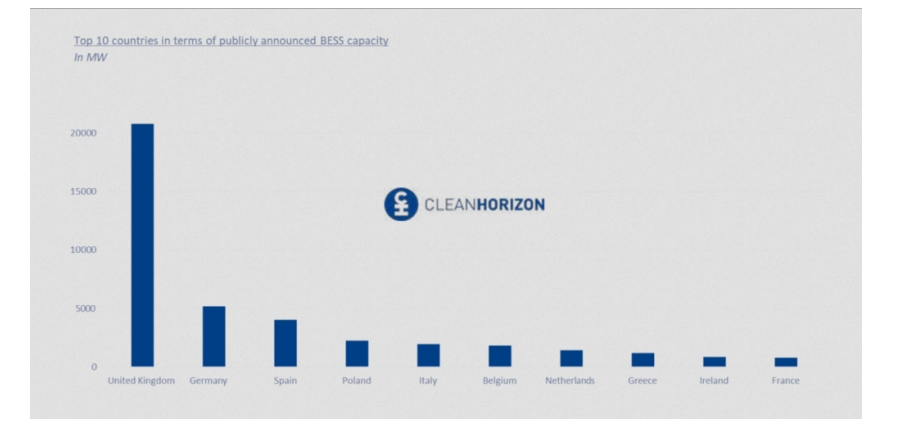 在考察歐洲運(yùn)營電池儲(chǔ)能系統(tǒng)的主要市場時(shí),英國以顯著的優(yōu)勢脫穎而出。英國儲(chǔ)能市場增長是由幾年前舉行的定向拍賣推動(dòng)的,這些拍賣分配了大量儲(chǔ)能容量。此外,英國已經(jīng)建立了利潤豐厚的輔助服務(wù)市場,為儲(chǔ)能系統(tǒng)吸引了大規(guī)模投資。