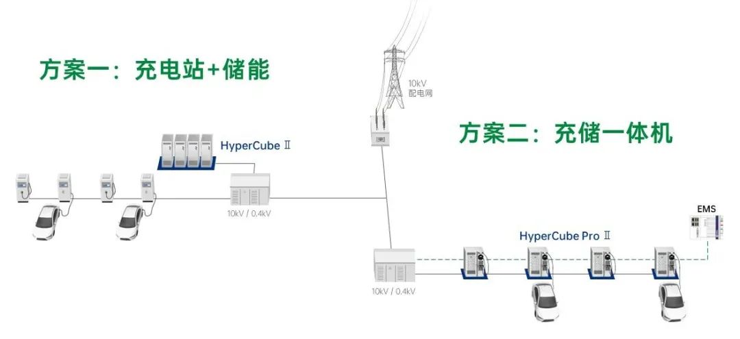 “充儲一體機”模式,該方案主力產(chǎn)品為更新版的HyperCube ProⅡ產(chǎn)品,與傳統(tǒng)充電場站相比,該方案具備五大優(yōu)勢。