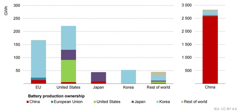 圖 全球鋰離子電池產(chǎn)能地區(qū)和廠商分布