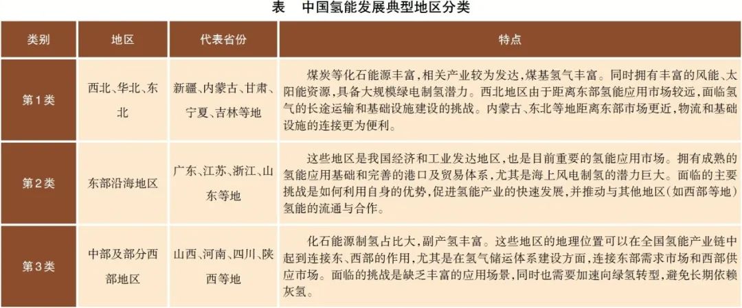 為分析方便,本文根據(jù)各地資源稟賦、產(chǎn)業(yè)基礎(chǔ)、市場(chǎng)需求等因素,將目前氫能發(fā)展的典型地區(qū)分為三大類(見表)。