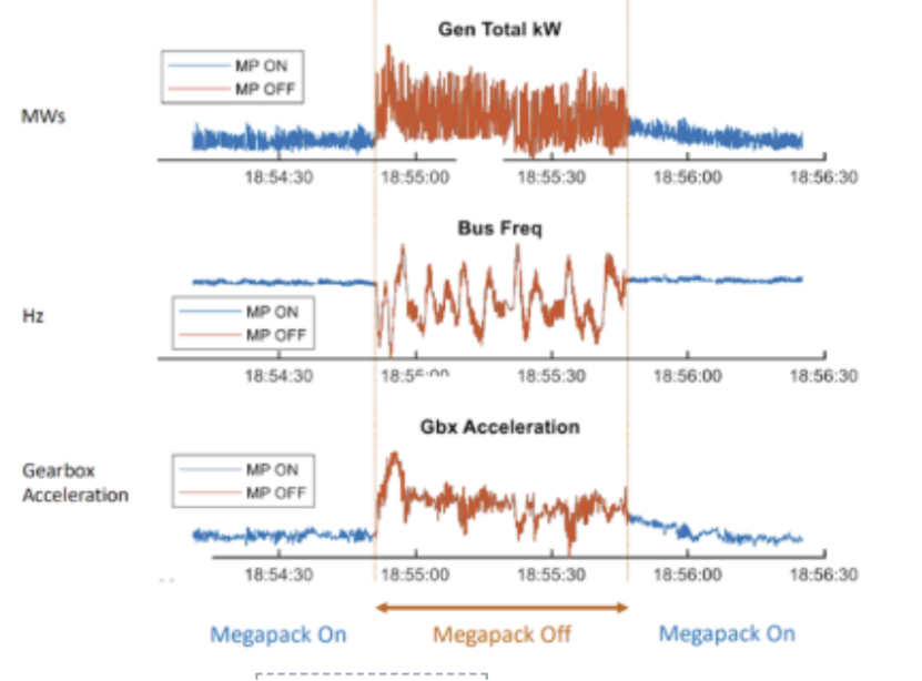 d)Megapack 直接應(yīng)對(duì)“亞秒級(jí)”波動(dòng):特斯拉Megapack基于磷酸鐵鋰電池+逆變系統(tǒng),具備毫秒級(jí)響應(yīng)特性,可在訓(xùn)練負(fù)載驟降時(shí)迅速“吸收”富余電力并在負(fù)載陡升時(shí)平滑補(bǔ)能,維持電網(wǎng)頻率穩(wěn)定,同時(shí)相較傳統(tǒng)UPS或柴油發(fā)電。