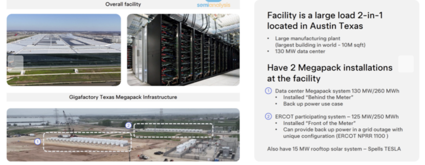 3.隨著儲(chǔ)能在AI數(shù)據(jù)中心電力穩(wěn)定性管理中成為“性價(jià)比最優(yōu)解”,這為特斯拉打開了一個(gè)極具增長(zhǎng)潛力的新市場(chǎng),報(bào)告中梳理了特斯拉目前在數(shù)據(jù)中心儲(chǔ)能中的進(jìn)展: