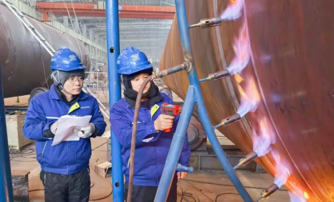 這是年前最困擾生產(chǎn)的問題。身為焊接“主操手”的黃佩文皺起了眉頭,“鋼板不來,我這焊工也干不了活啊”,拿起了手中電話,簡單幾句聯(lián)系后,第二天,他就出現(xiàn)在了內(nèi)蒙古的鋼板供應(yīng)商車間現(xiàn)場。有了這個(gè)前線的橋頭堡,生產(chǎn)進(jìn)度、大雪天氣、春運(yùn)物流等困難一一化解,前三臺(tái)產(chǎn)品所需的筒體鋼板終于搶在春節(jié)前到位,解了燃眉之急。