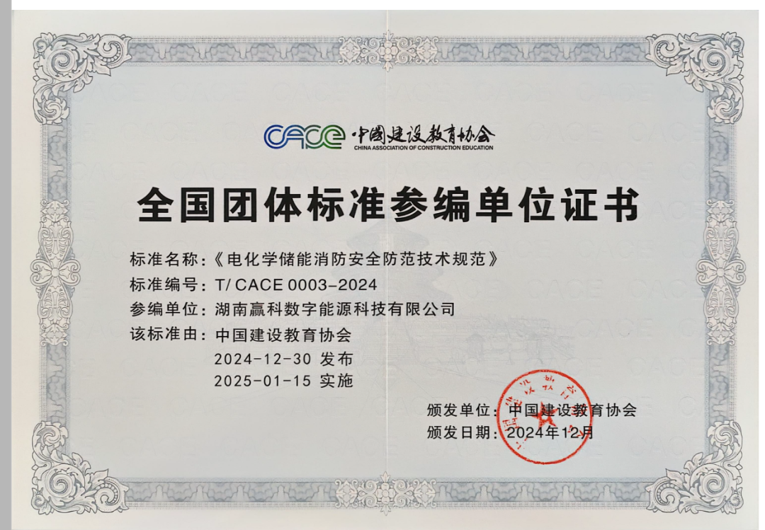 中國(guó)儲(chǔ)能網(wǎng)訊:自成立以來(lái),始終致力于將自身在工商業(yè)儲(chǔ)能領(lǐng)域積累的深厚技術(shù)底蘊(yùn)與豐富項(xiàng)目經(jīng)驗(yàn),回饋于行業(yè)標(biāo)準(zhǔn)建設(shè),積極“獻(xiàn)計(jì)獻(xiàn)策”。2024年12月,贏科數(shù)能成為中國(guó)建設(shè)教育協(xié)會(huì)《電化學(xué)儲(chǔ)能消防安全防范技術(shù)規(guī)范》團(tuán)體標(biāo)準(zhǔn)的重要編制單位之一,推動(dòng)儲(chǔ)能安全規(guī)則制定。