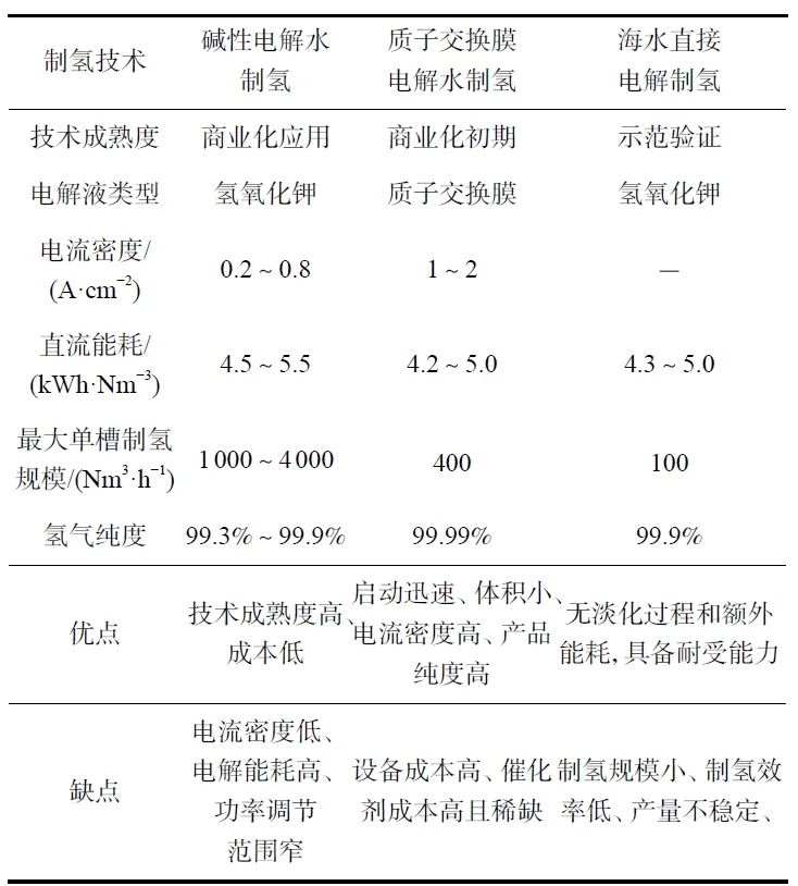 除傳統(tǒng)純水電解制氫路線外,利用海水直接電解制氫技術(shù)也是近年來(lái)發(fā)展海上風(fēng)電制氫的重要技術(shù)路徑之一。海上風(fēng)電電解水制氫技術(shù)對(duì)比如下表所示。