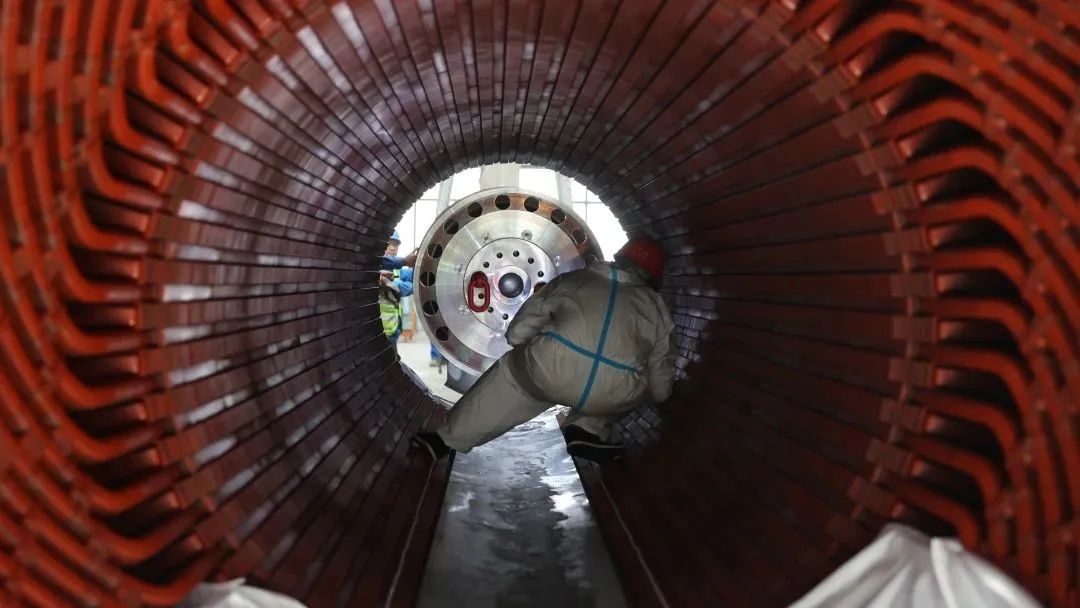 中國(guó)儲(chǔ)能網(wǎng)訊:“成功完成!”歡呼聲響起,7月1日16時(shí)50分,重約65噸、長(zhǎng)度為13米的轉(zhuǎn)子,在機(jī)械和人力共同配合下,穩(wěn)穩(wěn)地安裝到了定子中。轉(zhuǎn)子和定子的間隙僅為2.4毫米,它們共同組成了甘肅酒泉300兆瓦級(jí)壓縮空氣儲(chǔ)能電站三大主機(jī)之一的發(fā)電機(jī),標(biāo)志著世界首臺(tái)(套)300兆瓦級(jí)人工硐室壓縮空氣儲(chǔ)能項(xiàng)目進(jìn)入建設(shè)關(guān)鍵期。