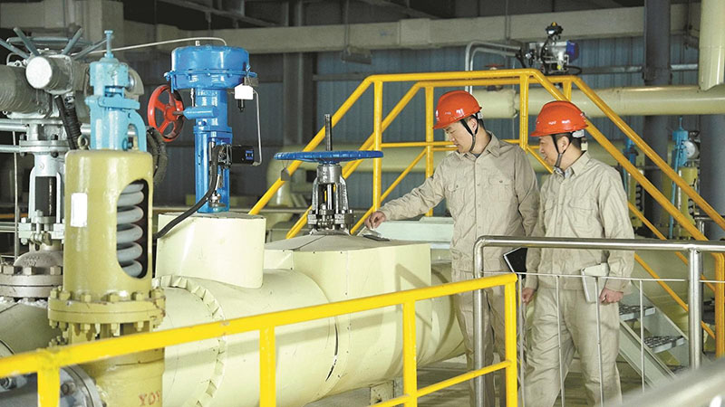國(guó)網(wǎng)江蘇綜合能源公司員工在電極鍋爐輔助調(diào)峰項(xiàng)目現(xiàn)場(chǎng)查看設(shè)備運(yùn)行情況。陶飛揚(yáng) 攝