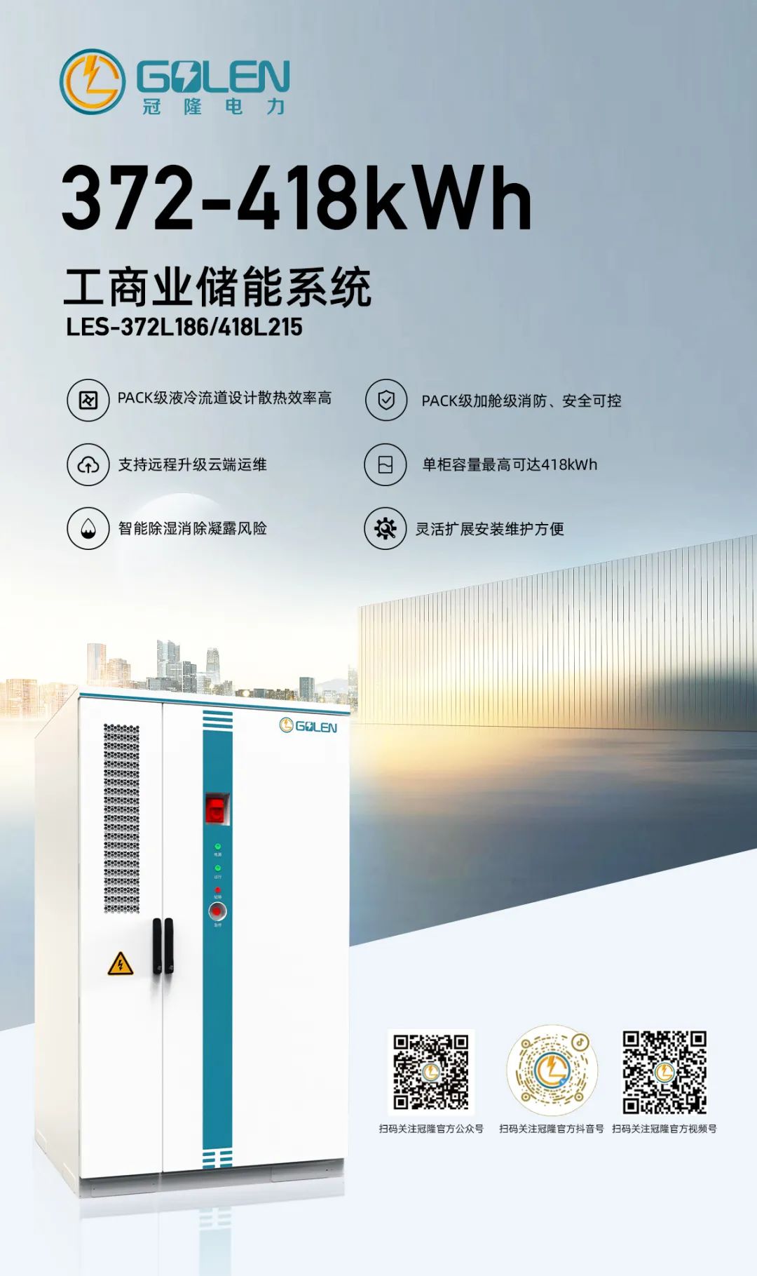 中國(guó)儲(chǔ)能網(wǎng)訊:在工商業(yè)儲(chǔ)能領(lǐng)域,高效、穩(wěn)定、安全的電力保障是企業(yè)運(yùn)營(yíng)的重要支撐。冠隆電力推出的372-418kWh工商業(yè)儲(chǔ)能系統(tǒng),以實(shí)用的技術(shù)與設(shè)計(jì),為工商業(yè)用戶(hù)用電管理帶來(lái)新選擇。