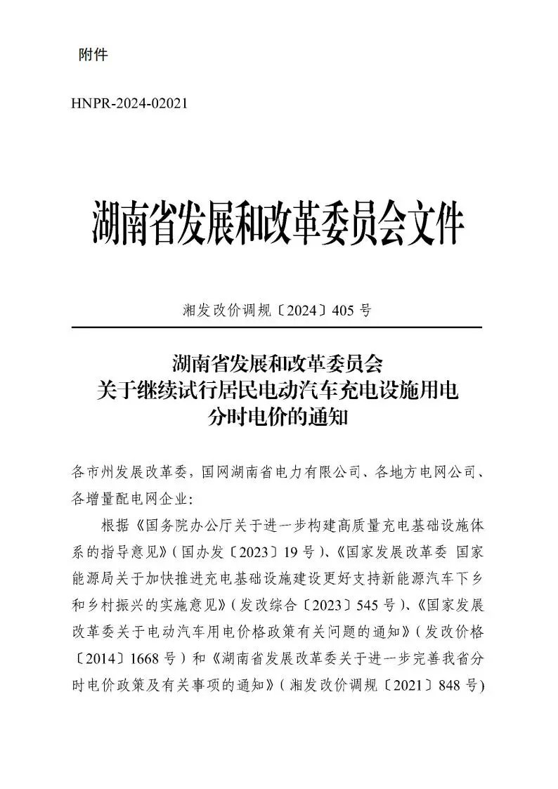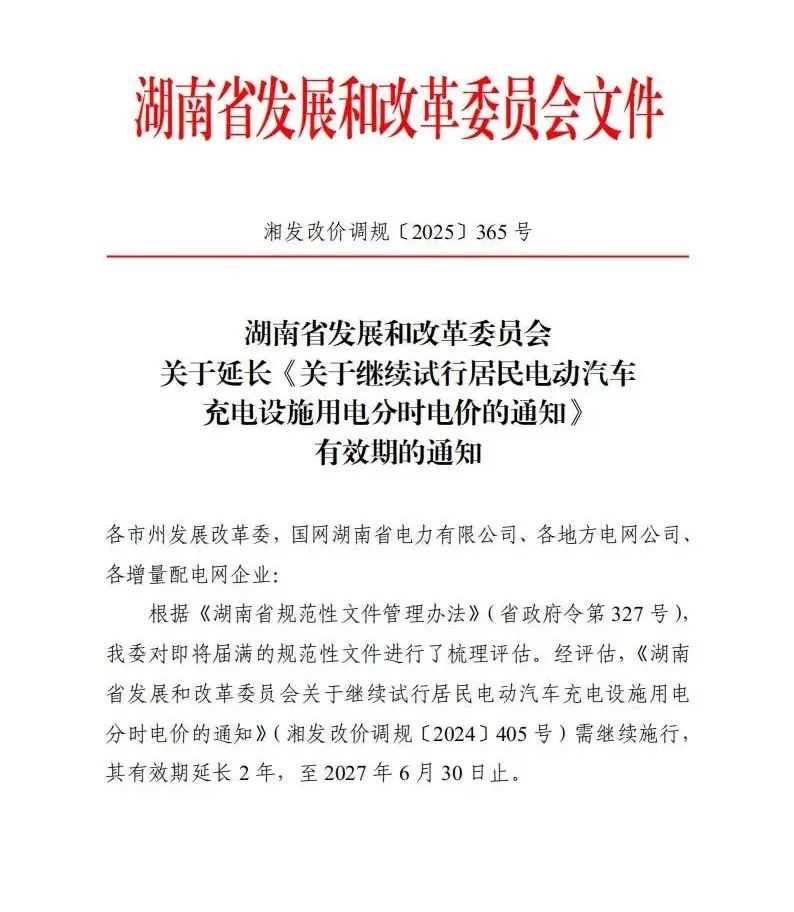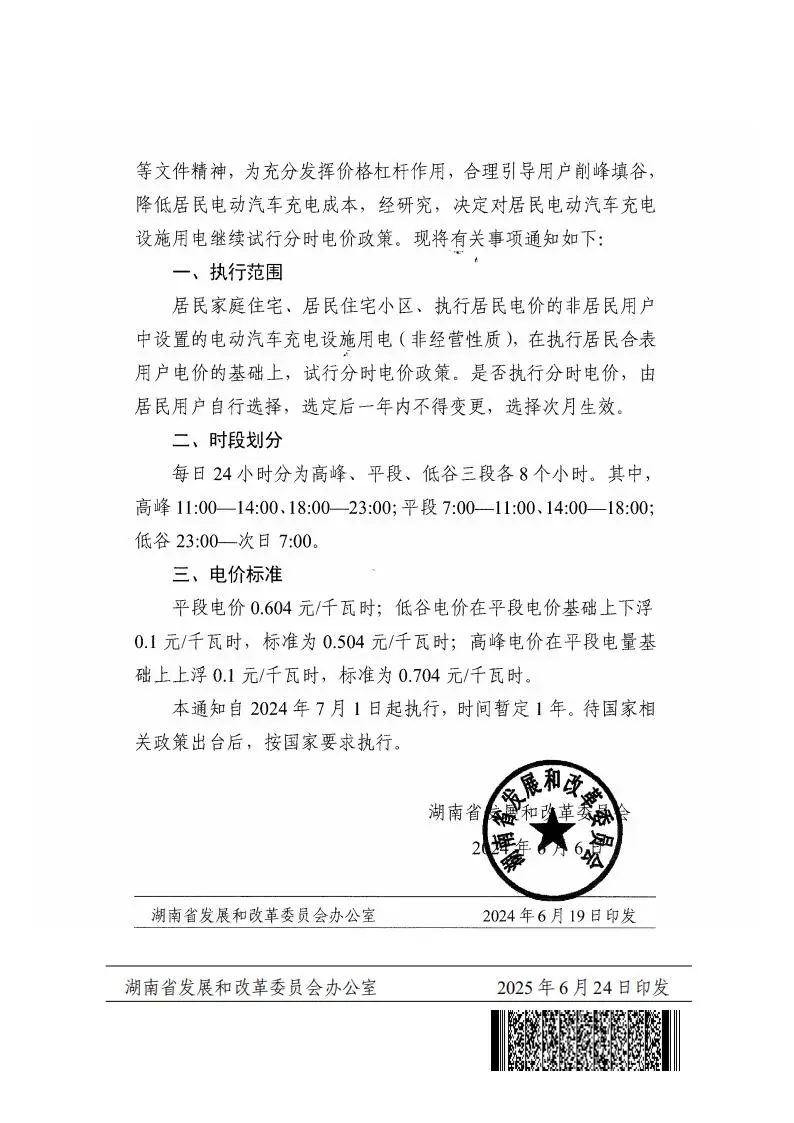 湖南省繼續(xù)試行居民充電設施用電分時電價政策