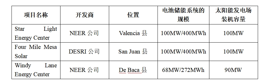 PNM公司正在尋求批準采購的三個太陽能+儲能項目的詳情如下表所示: