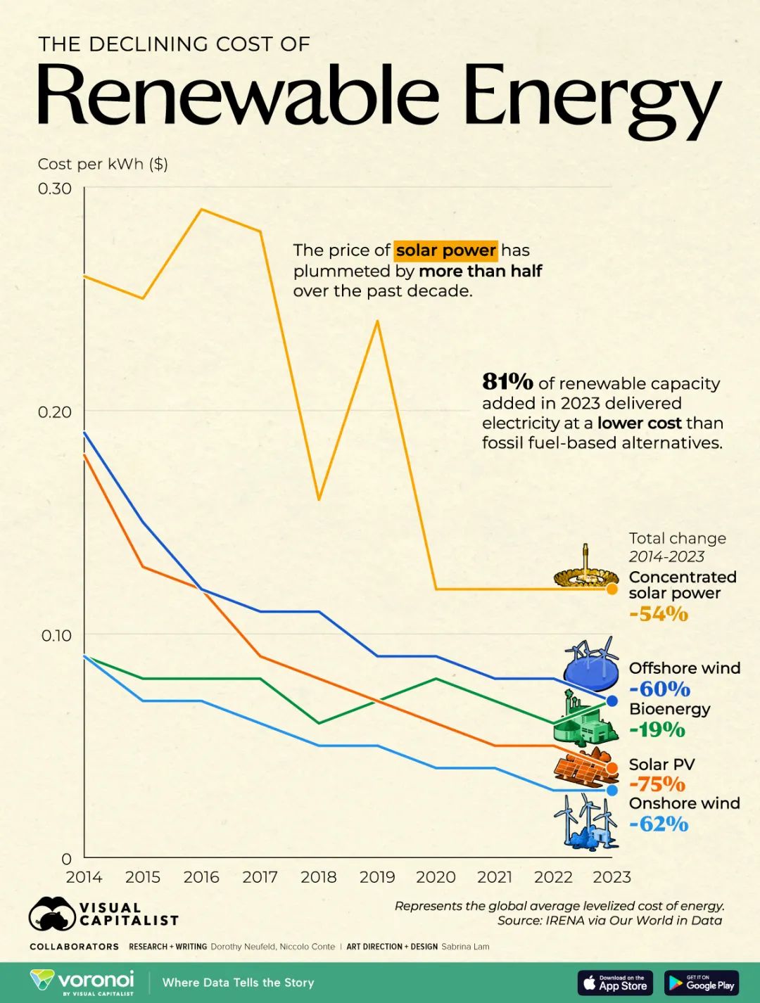 2023年,81%的新增可再生能源裝機容量比化石燃料替代品更具成本效益。這遵循了賴特定律,該定律觀察到隨著生產(chǎn)規(guī)模的擴大,技術成本會下降,這一趨勢如今正在綠色能源領域上演。