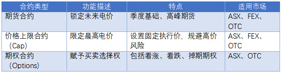表1:澳大利亞電力衍生品市場(chǎng)主要交易產(chǎn)品