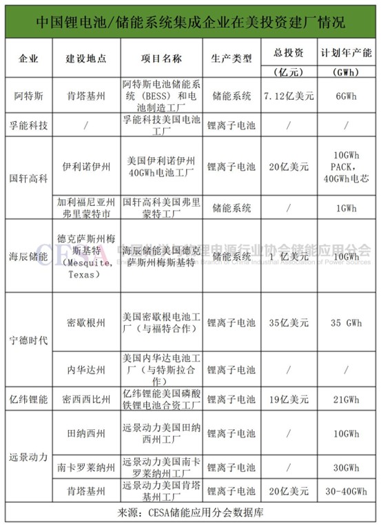 在此情況下,中國儲(chǔ)能企業(yè)也加快了在美國市場的產(chǎn)能布局。
