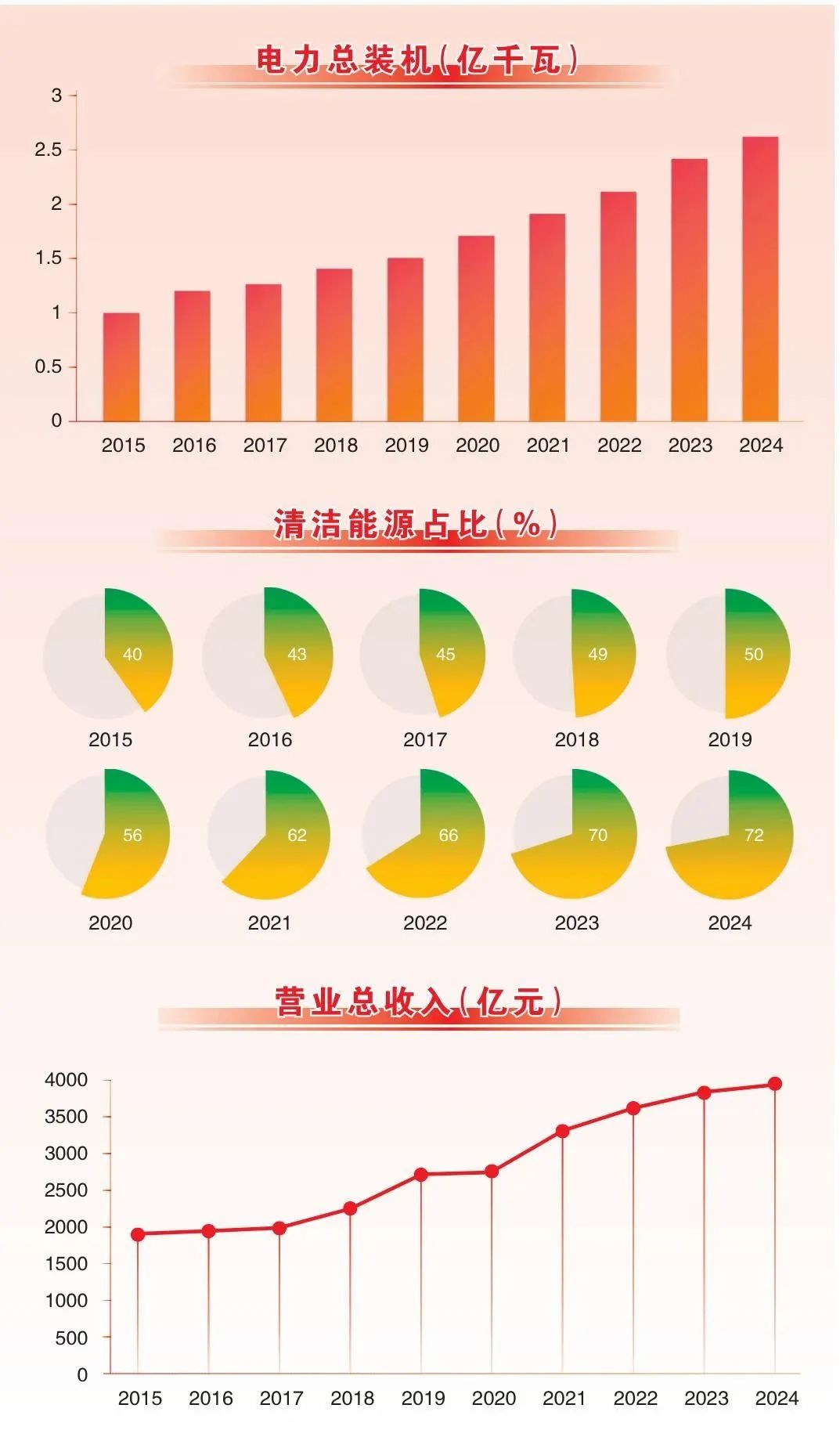 十年間,裝機(jī)結(jié)構(gòu)不斷優(yōu)化,清潔能源占比從38.47%走起,到2019年突破50%,如今已達(dá)到73.08%。