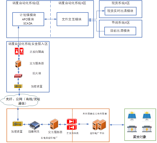 虛擬電廠平臺(tái)接入路徑方面,需在虛擬電廠運(yùn)營(yíng)商內(nèi)網(wǎng)建設(shè)獨(dú)立區(qū)域,部署邊緣網(wǎng)關(guān),邊緣網(wǎng)關(guān)與調(diào)度自動(dòng)化系統(tǒng)主站安全接入?yún)^(qū)連接,上行和下行通過(guò)經(jīng)過(guò)公安部認(rèn)證且滿足國(guó)標(biāo)GB/T20279或GB/T37934的隔離裝置與虛擬電廠管理平臺(tái)連接。
