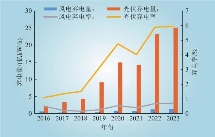 圖1 2016—2023年CAISO運(yùn)營區(qū)域新能源棄電量和棄電率分析