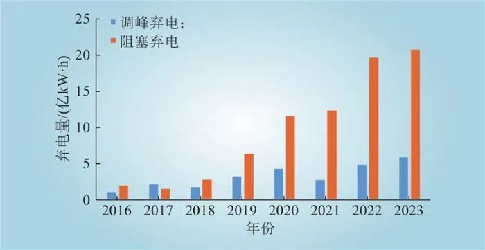 圖2 2016—2023年CAISO運(yùn)營區(qū)域新能源調(diào)峰棄電和阻塞棄電分析