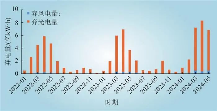 圖3 2022年1月—2024年5月CAISO運(yùn)營區(qū)域新能源逐月棄電量分析