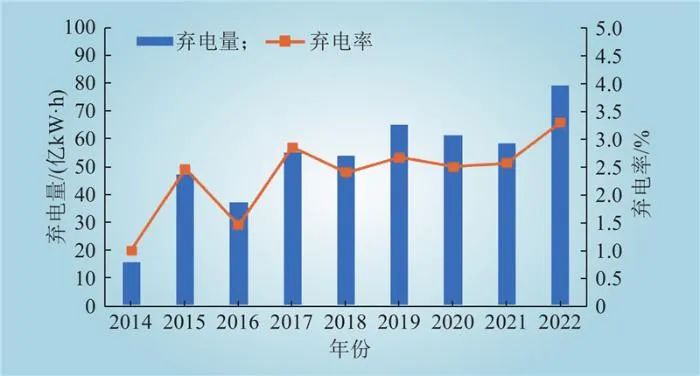 圖5 2014—2022年德國新能源棄電量和棄電率分析