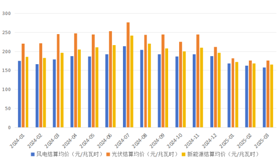 圖2 蒙西電力市場新能源結算價格情況(2024年1月—2025年3月)
