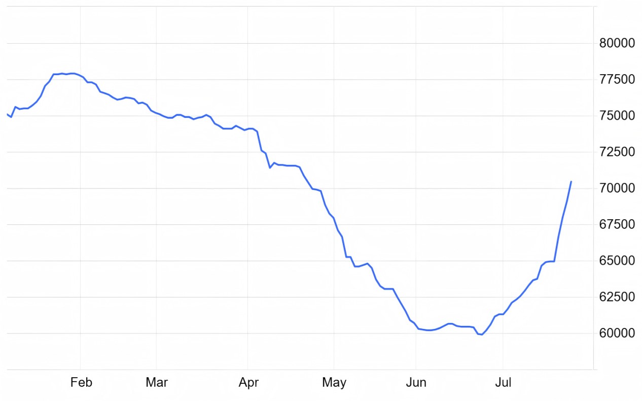 圖 2025年國內(nèi)碳酸鋰價格走勢(元/噸)