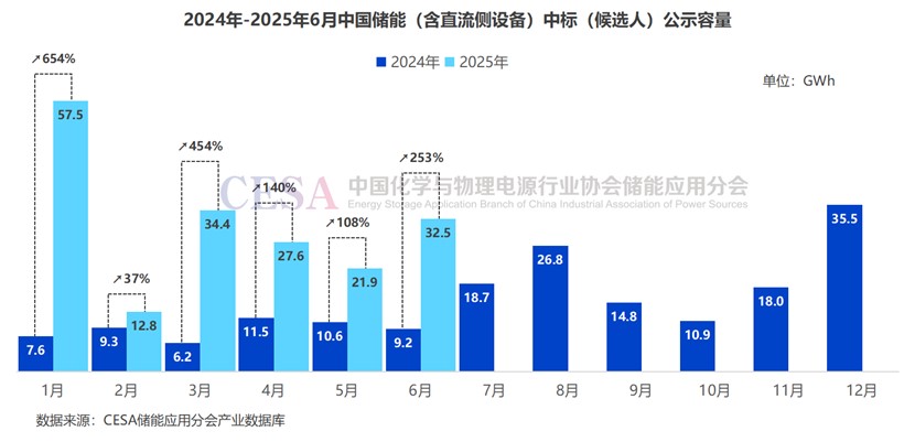 在儲能行業(yè),2025年上半年,海外、國內(nèi)市場需求都在高速攀升,最終引發(fā)終端對儲能電芯的需求上漲。據(jù)CESA儲能應(yīng)用分會產(chǎn)業(yè)數(shù)據(jù)庫統(tǒng)計,2025年1—6月,中國企業(yè)新獲199個海外儲能訂單/合作,總規(guī)模超160GWh,同比增長220.28%。2025年1—6月,國內(nèi)儲能(含直流側(cè)設(shè)備)采招落地規(guī)模達(dá)46.1GW/186.7GWh,容量規(guī)模同比增長243%,環(huán)比增長50%。