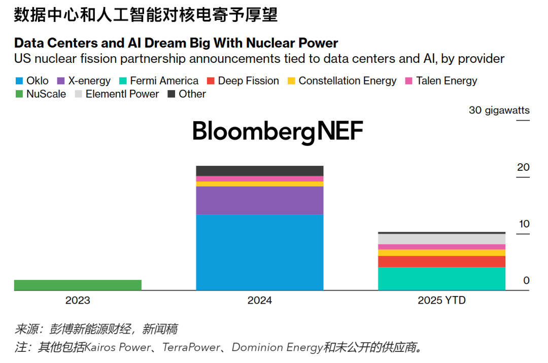 亞馬遜、谷歌、Meta、微軟和甲骨文等公司與核裂變公司達(dá)成的合作項(xiàng)目——總裝機(jī)容量達(dá)12.5GW——已成為市場關(guān)注焦點(diǎn)。谷歌上周還宣布與Commonwealth Fusion公司達(dá)成200MW的合作。