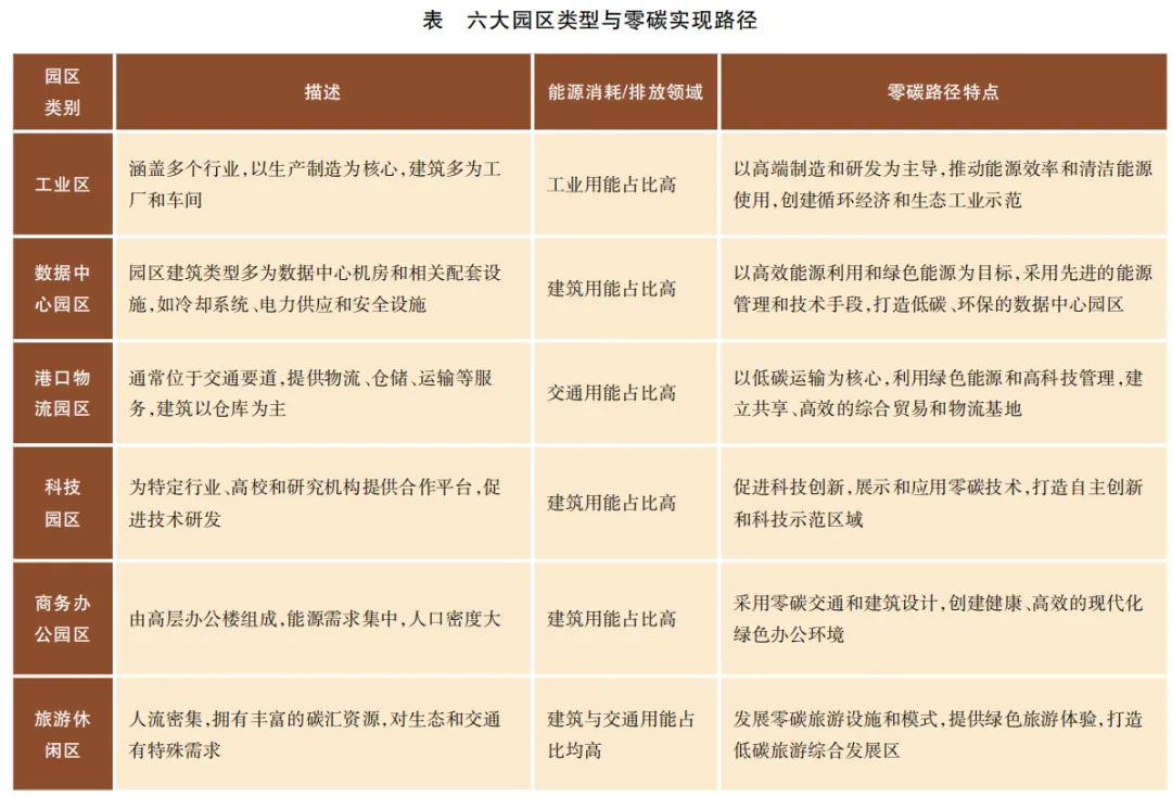 下表基于六大園區(qū)類型揭示了不同園區(qū)功能定位與零碳路徑的關(guān)聯(lián)性。工業(yè)區(qū)與港口物流園分別以工業(yè)用能、交通用能為主導(dǎo),需聚焦清潔能源替代及效率提升;數(shù)據(jù)中心、科技園和商務(wù)園均屬建筑用能密集型,依賴智慧能源管理(如數(shù)據(jù)中心PUE優(yōu)化)和零碳建筑設(shè)計(jì);旅游區(qū)則兼具建筑與交通雙高能耗特征,需結(jié)合碳匯資源開(kāi)發(fā)低碳設(shè)施與綠色體驗(yàn)。盡管路徑差異顯著,所有園區(qū)均需整合可再生能源應(yīng)用、系統(tǒng)能效優(yōu)化及數(shù)字化碳管理,凸顯零碳轉(zhuǎn)型中“分型施策”與“系統(tǒng)協(xié)同”的雙重邏輯。