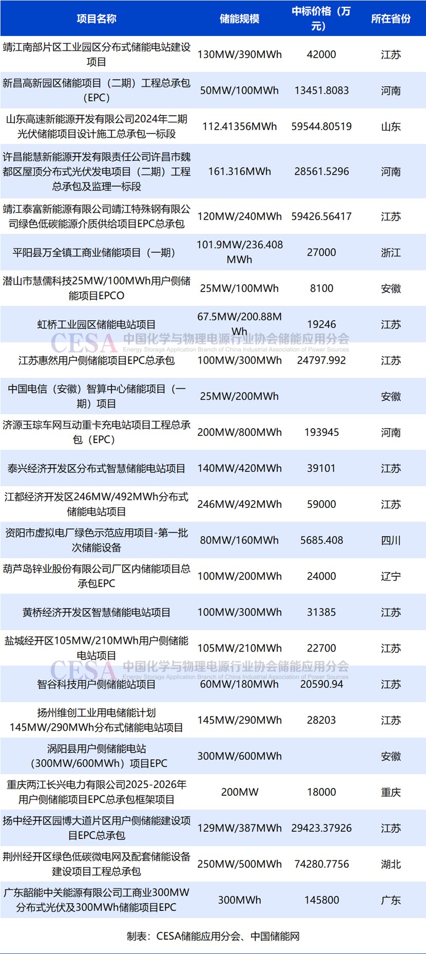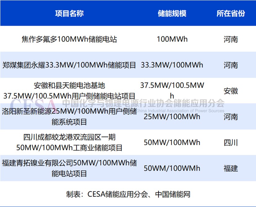 表 2025年1-6月新增并網(wǎng)百兆瓦時級工商業(yè)儲能項目
