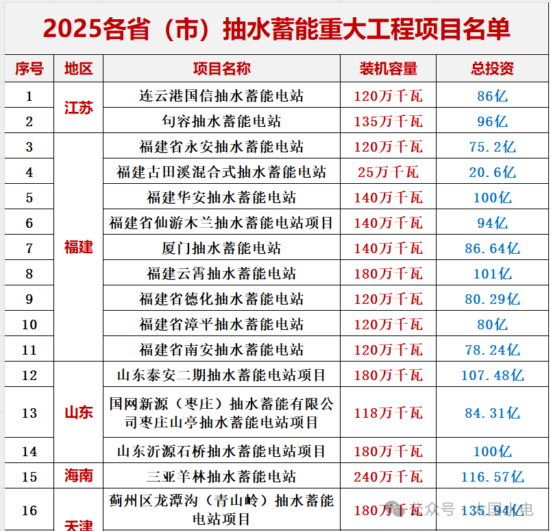 2025年各?。ㄊ校?/strong>抽水蓄能重大工程項(xiàng)目清單