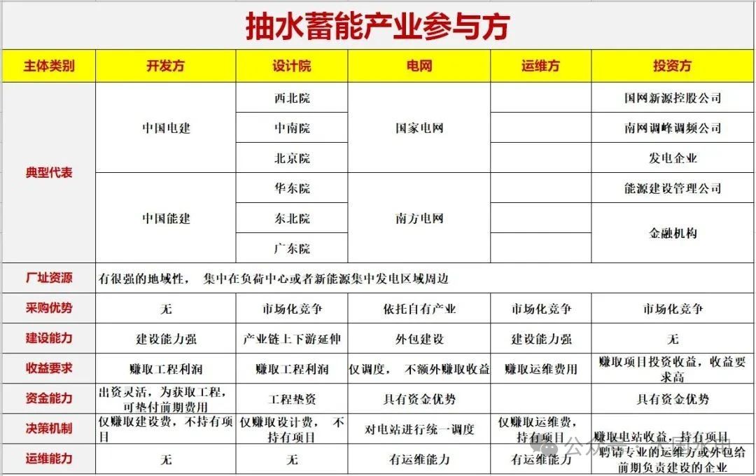除了電網(wǎng)企業(yè),五大發(fā)電集團(tuán)也在加速布局抽水蓄能,電網(wǎng)企業(yè)、發(fā)電集團(tuán)和電力建設(shè)企業(yè)是抽水蓄能開發(fā)的投資主體。