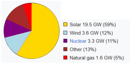 圖三:事發(fā)時風(fēng)光占比:68.53%,值得注意的是,由于電價低(-1歐元/MWh),當(dāng)時核電僅以一半功率運(yùn)行。