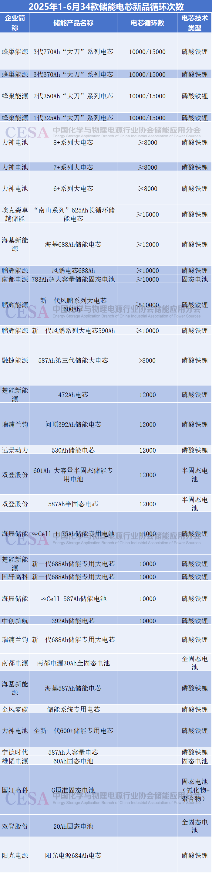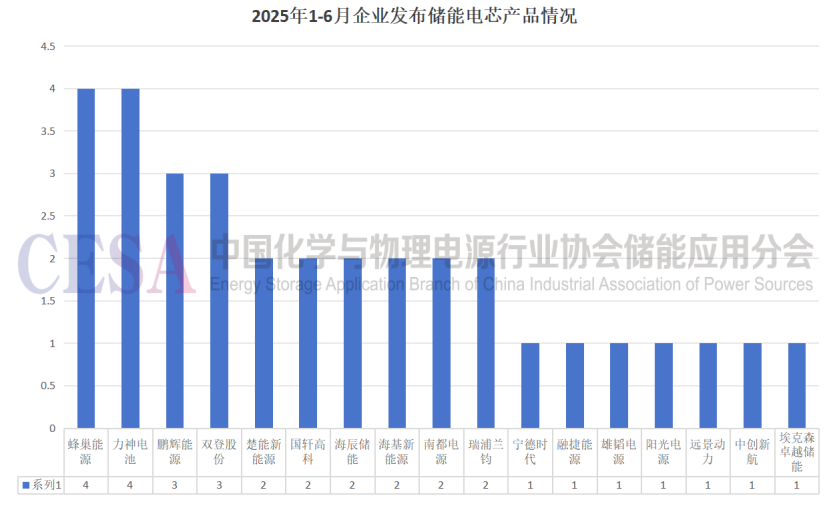 據(jù)CESA儲(chǔ)能應(yīng)用分會(huì)產(chǎn)業(yè)數(shù)據(jù)庫(kù)不完全統(tǒng)計(jì),2025年1-6月共計(jì)17家企業(yè)相繼發(fā)布34款儲(chǔ)能電芯新品。