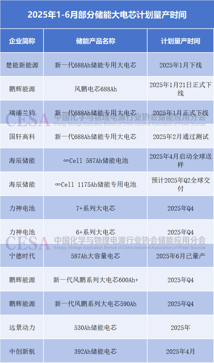 頭部企業(yè)動(dòng)作尤為密集:楚能新能源、鵬輝能源、瑞浦蘭鈞三家同步在2025年1月完成688Ah電芯下線,形成技術(shù)代際的集體突破;寧德時(shí)代則以6月587Ah電芯量產(chǎn)的節(jié)點(diǎn),鞏固其產(chǎn)能轉(zhuǎn)化效率優(yōu)勢(shì)。