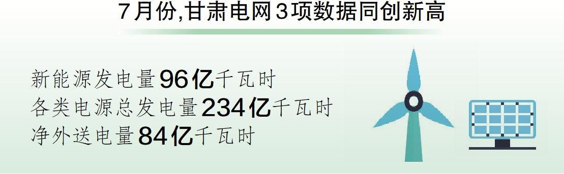 8月1日,經(jīng)國(guó)網(wǎng)甘肅省電力公司統(tǒng)計(jì),7月份甘肅電網(wǎng)新能源發(fā)電量96億千瓦時(shí),首次超90億千瓦時(shí);各類電源總發(fā)電量234億千瓦時(shí),同比增加4.46%;凈外送電量84億千瓦時(shí),同比增加23.53%,3項(xiàng)數(shù)據(jù)同創(chuàng)新高。