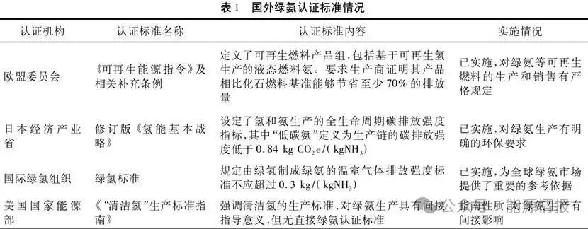 1 綠氨的認(rèn)證標(biāo)準(zhǔn)