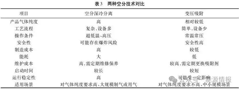 氮?dú)庵苽渲饕ㄟ^(guò)空氣分離設(shè)備從空氣中提取。空氣分離技術(shù)已非常成熟,主要包括深冷分離和變壓吸附兩種方法。深冷分離法通過(guò)低溫液化空氣,利用不同組分的沸點(diǎn)差異進(jìn)行分離;變壓吸附法則利用吸附劑對(duì)空氣中各組分的吸附能力差異,在壓力變化下實(shí)現(xiàn)分離。技術(shù)對(duì)比見表3。