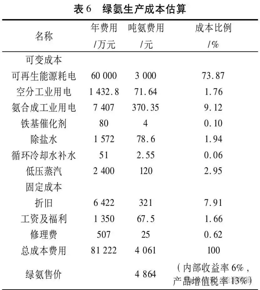 3 綠氨生產(chǎn)的經(jīng)濟(jì)性分析