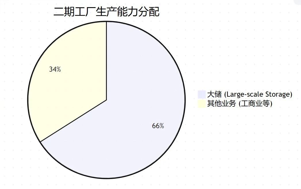 一個(gè)值得深思的布局是:在當(dāng)前工商業(yè)儲(chǔ)能市場(chǎng)一片火熱的背景下,萬(wàn)金的二期工廠,卻將高達(dá)66%的戰(zhàn)略資源,投向了技術(shù)更復(fù)雜、體量更龐大的大儲(chǔ)領(lǐng)域。