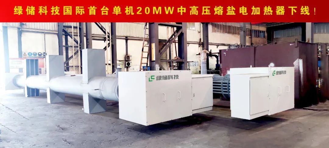 2024年5月25日,用于金塔項目的綠儲科技自主研發(fā)的全球首臺單機(jī)20MW熔鹽電加熱器成功下線;